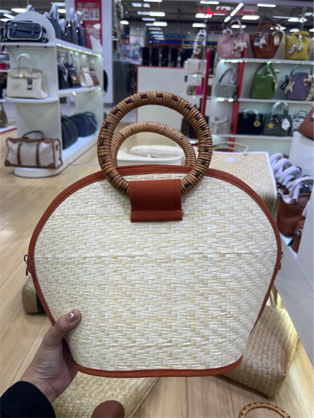 Túi handmade cói cỏ bàng quai mây TT370